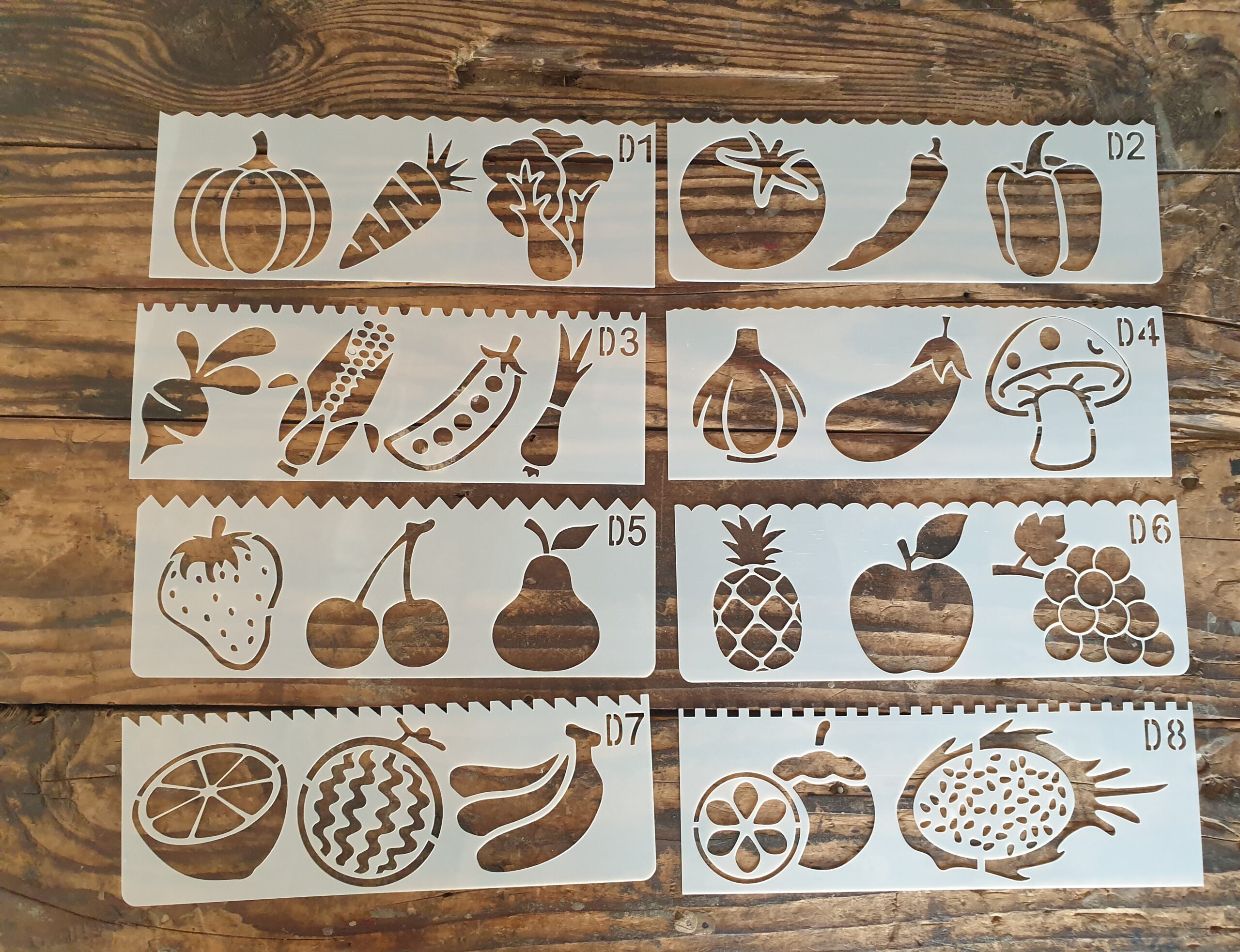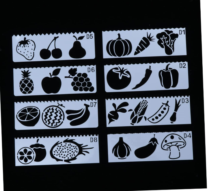 Home Icing Stencils 8 pcs Fruits and vegetables Theme Decoration icing Stencils set