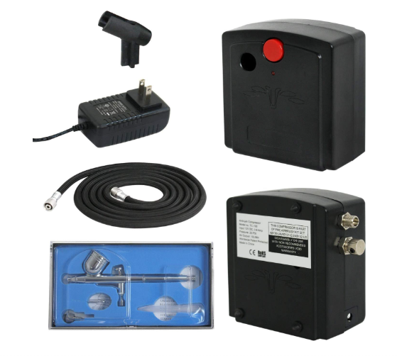 • Model TC-100 Black Mini Air Compressor; Needle/Nozzle and a 7cc. Gravity Fluid Cup.