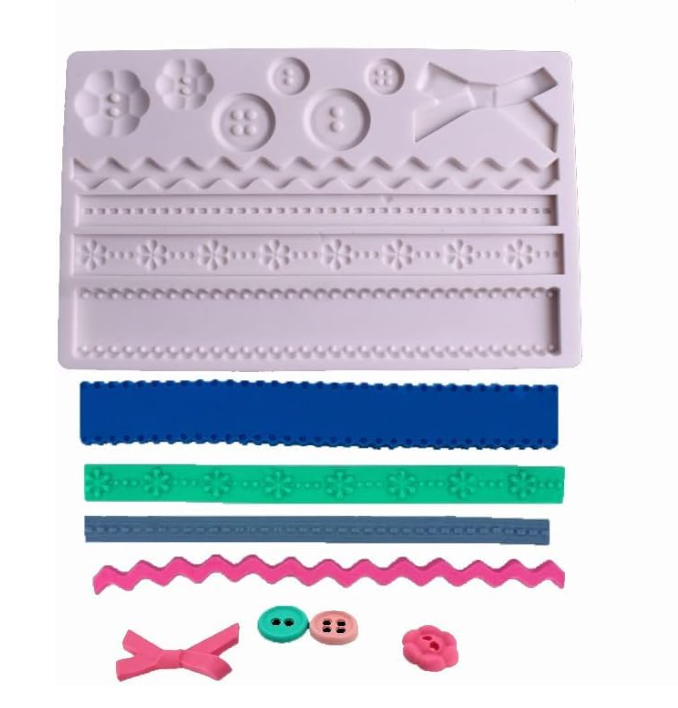 Home Buy Silicone Fondant Moulds Online | Premium Cake Decorating Moulds Bow Ribbon button Border theme Silicone Mould