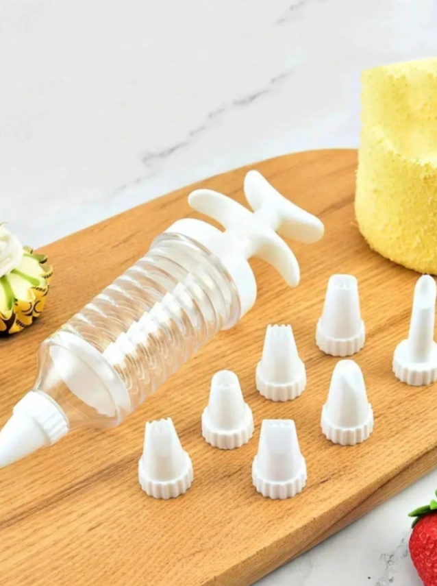 Cake Decor Plastic Icing Piping Syringe Tips 1 PCS Cake Decoration 8 pcs Nozzle Set