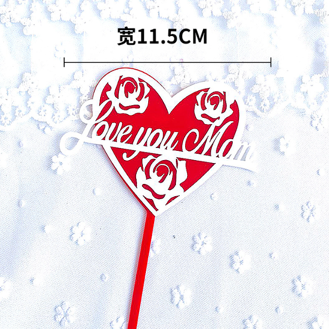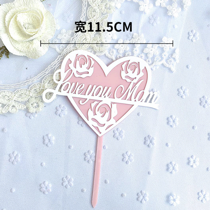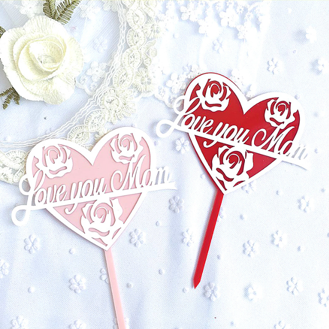 Home Mother's Day Double acrylic i love you mom with rose cake topper