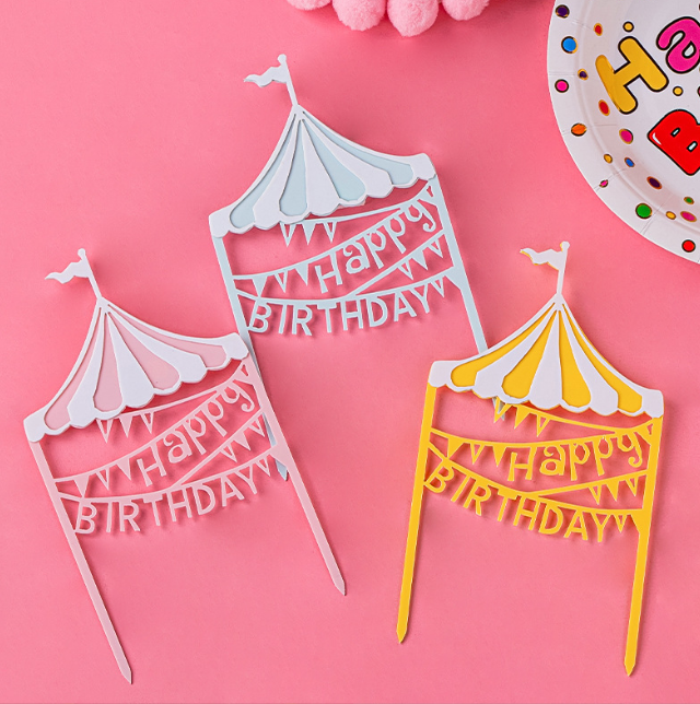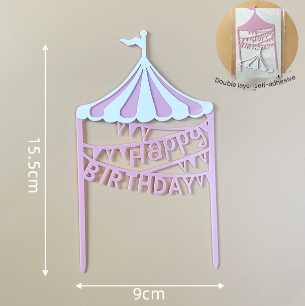 Double Layer Happy Birthday Circus Banner Acrylic Cake Topper