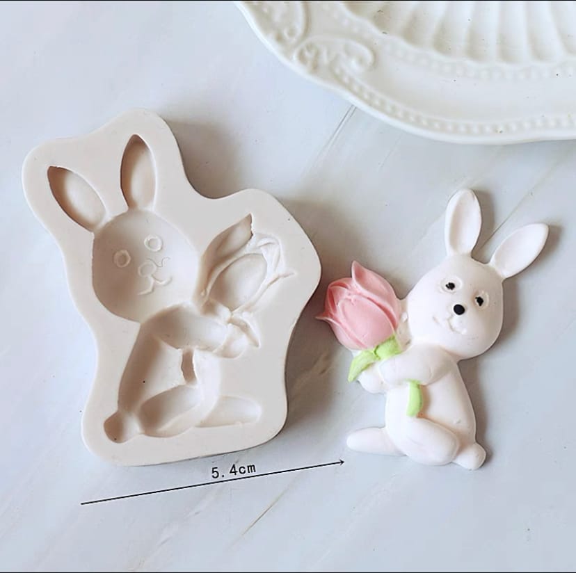 Easter Rabbit holds tulip carrot bunny Silicone Mould