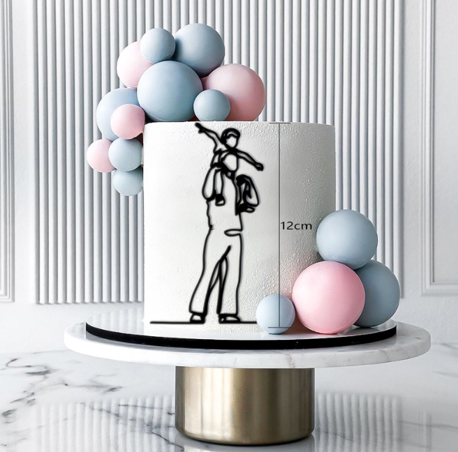 Father Holding Child outline acrylic cutout cake topper Style 4