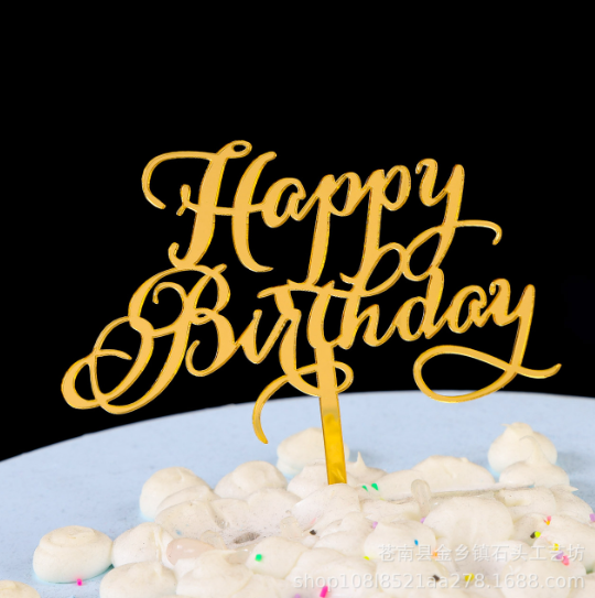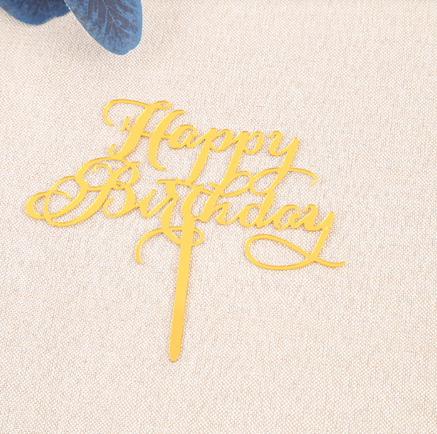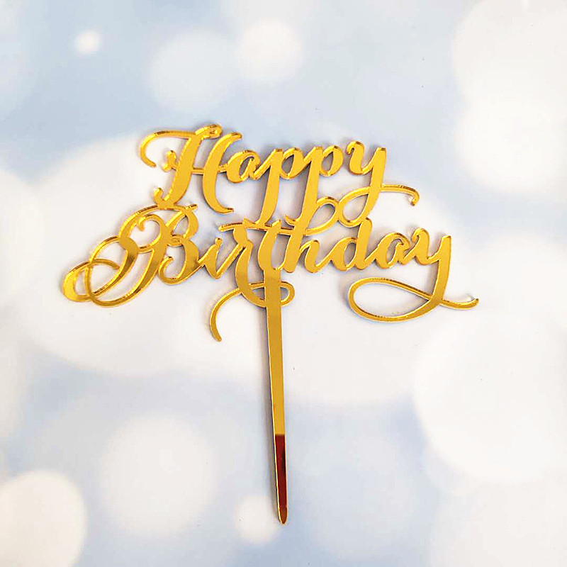Golden font happy birthday cake topper