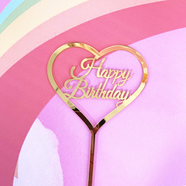 Golden heart shaped happy birthday cake topper