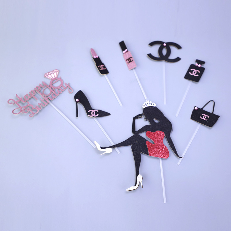 Home Toppers Happy birthday Girls Makeup Branded theme Cake Topper set