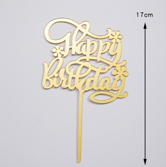 Happy birthday with flower Acrylic Cake Toppers