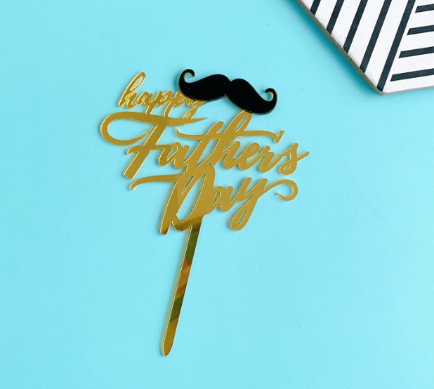Happy fathers day with mustache acrylic cake topper