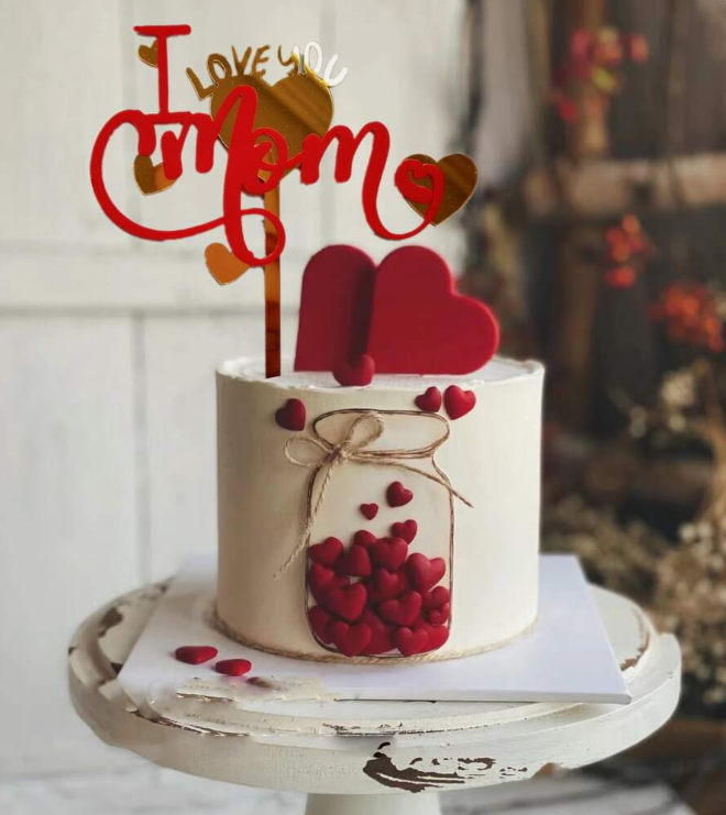 Home Mother's Day I Love Mom with red Heart cake topper STYLE 29