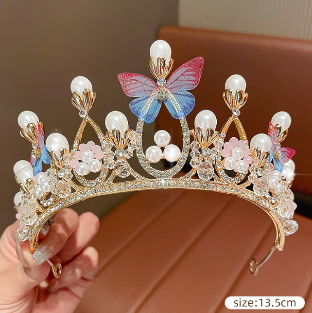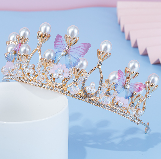 Jeweled Pearls and butterfly Crown Cake Topper for Cake Decorating