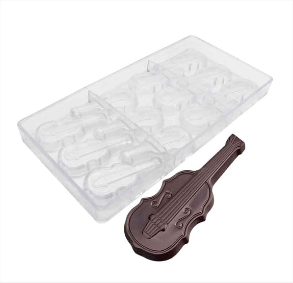 Polycarbonate 12 Cavities Musical Violin Guitar Shape Chocolate Mold (Output Weight Approx: 15 Grams Per Cavity)