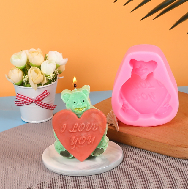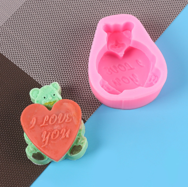 Teddy Bear holding heart i love you silicone mould