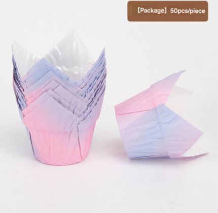 Tulip shape Gradient Colour Aluminum Foil Baking Cups / Muffin Cups (50 pieces)