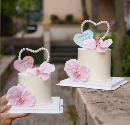 2 pcs Pink Large and small Orchid artificial flower cake topper Set